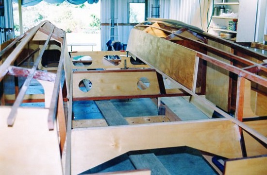 Both the JARCAT FIVE and JARCAT SIX have been designed for amateur construction, and the plans include simple instructions and plentiful drawings which are easily followed. You don't need any prior boat building experience to construct the JARCAT FIVE or JARCAT SIX designs. Although some builders have worked outdoors under a tarp, most build in a shed or garage. The JARCAT FIVE and JARCAT SIX are built in one piece so you should allow at least one metre all around plus a space to cut the plywood.