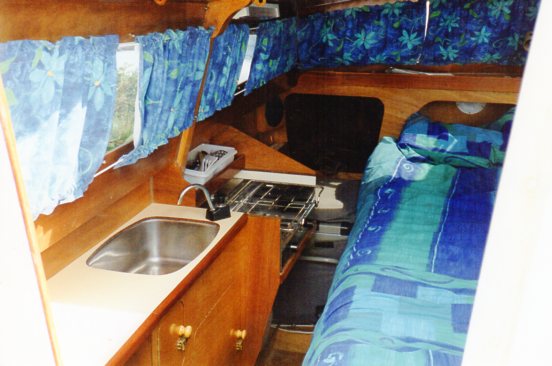 The JARCAT SIX is a much larger T/S, though still light enough to trail behind cars with 1500cc or better engines. They are quick to rig and launch, and all sail controls are light and easy to use as befits a family boat. All berths on the Jarcat 6 are 2.4m long! The galley may include a stove/sink/table & cupboards. Headroom need only be enough to sit up on the bed. The entry hatch on the MK11 JARCAT 6 is partly over the hull which allows a small area of standing room!
