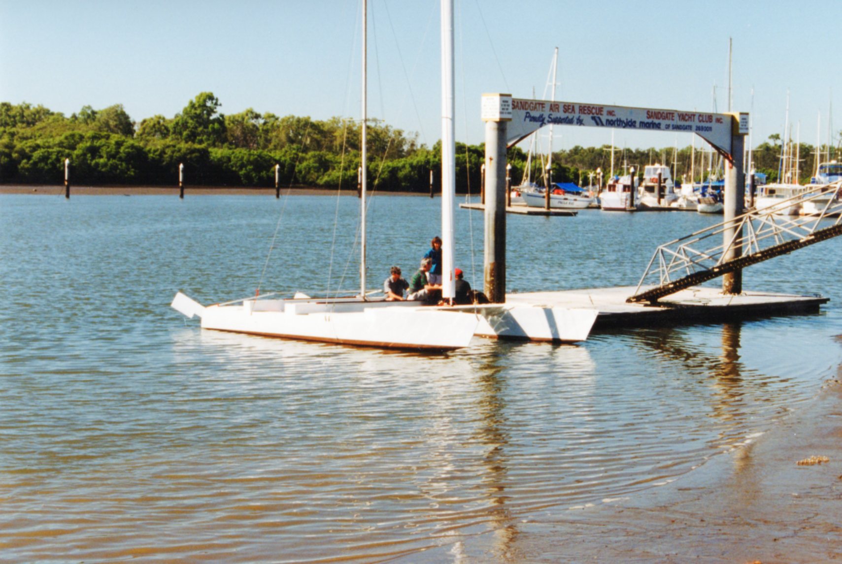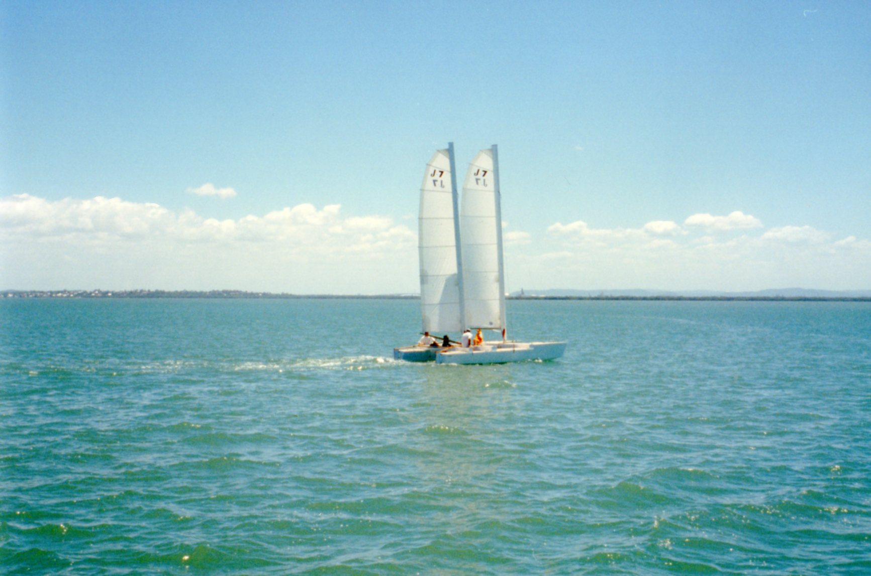 A J7 "Moreton Bay Jig" won the "Bay to Bay" in 1998. Another J7 "Friction" came second in 1999 and first in 2000. The rig is proving very easy to handle. The square top mainsails are easy to "power-up" and "depower". With both mainsheets released and the helm fully over, the J7 will sit almost stationary. Pull on the sheets and the J7 surges forward. So responsive. Faster than the wind.