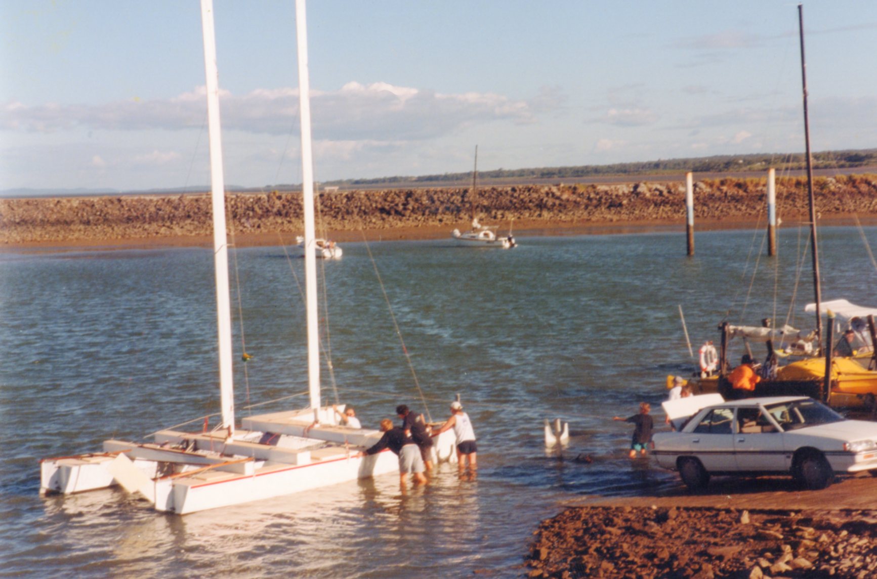 I have built, owned and sailed my J7 for four years. Bay sailing, Clarence River Bridge to Bridge in Northern New South Wales and The Bay to Bay inside Fraser Island each year.The JARCAT SEVEN is a larger cat with a very high aspect rig for performance.The hulls are wider than usual for a racing cat, with powerful aft sections. Fine fwd down low and considerable reserve higher up. The shape is a good load carrier for the role as in-shore cruiser with people & gear on board.